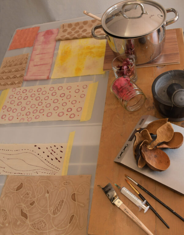 Neben verschiedenen Malkursen für Kinder und Erwachsene bieten wir Workshops zu den Themen Textildruck und Eco-Färben an. Darüber hinaus werden originale Kunstwerke und eco-gefärbte Seidentücher verkauft.